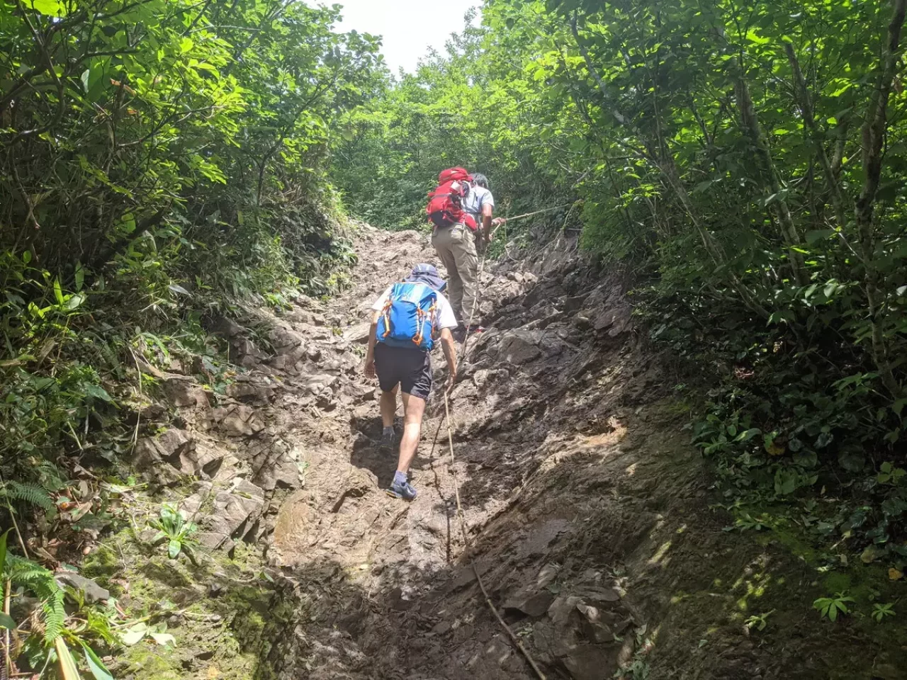 三大急登の西黒尾根で大変な思いをした人が代わりに使う登山道という印象が強いですが、こちらの登山道も一部、道が沢になっていて滑りやすく注意が必要なポイントが多くあります。