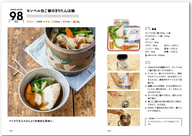軽量・コンパクト・高性能で大人気のクッキングバーナー「JETBOIL®(ジェットボイル®)」で作る、アイデア満載のレシピ本です。登山に持って行きやすい材料を選定して、且つ誰でも簡単に美味しく作ることができるレシピを55種類掲載しています。山ごはんだけでなくキャンプや日常でも楽しめちゃいます。ジェットボイルはお湯を沸かすためのクッカーと考えている方には、多くの発見をもたらしてくれるレシピ本に仕上がっています。
