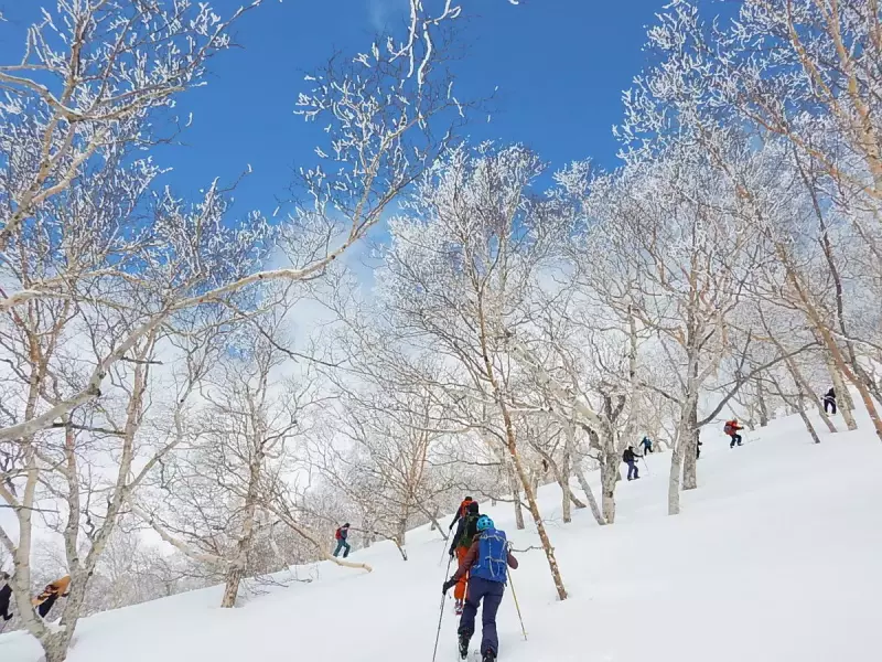 バックカントリーに入ると、当たり前ですがリフトなんてありません。スキーを履いて登って、移動して、滑っては登っての繰り返しです。この行動はほとんど登山と一緒です。違うのは下山で歩かないことぐらいです。