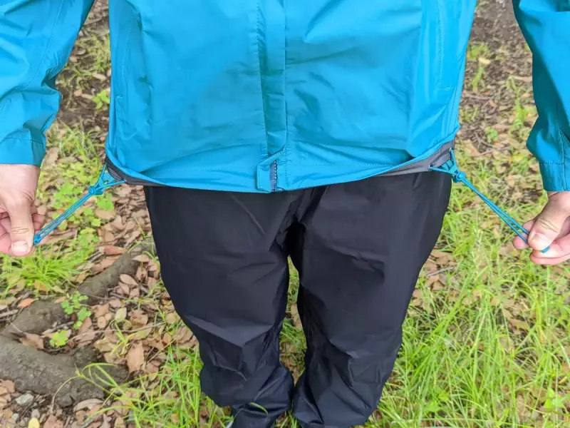 裾のドローコードは左右にあり、片手がふさがっていてもどちらかの手で裾をフィットさせることができます。
