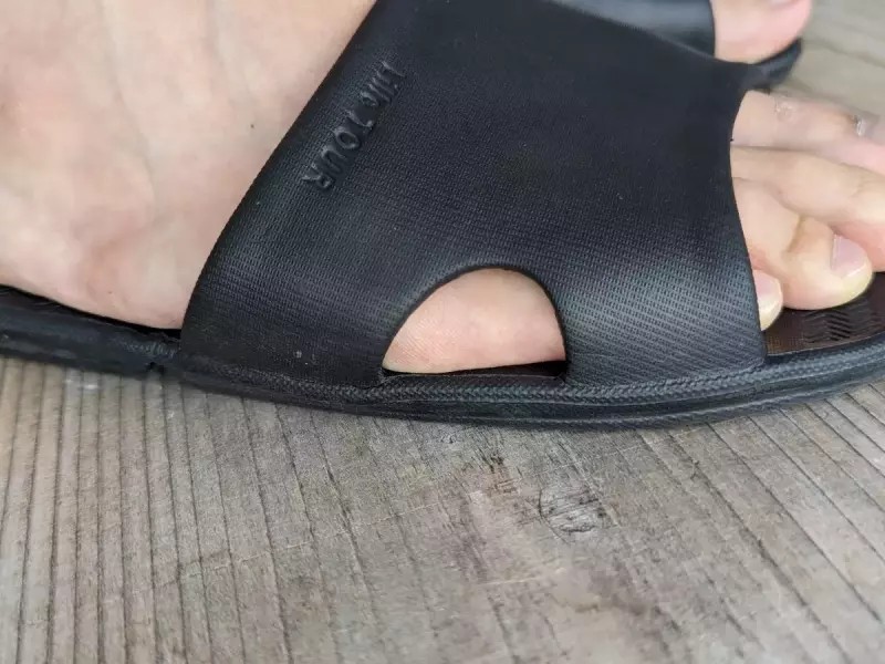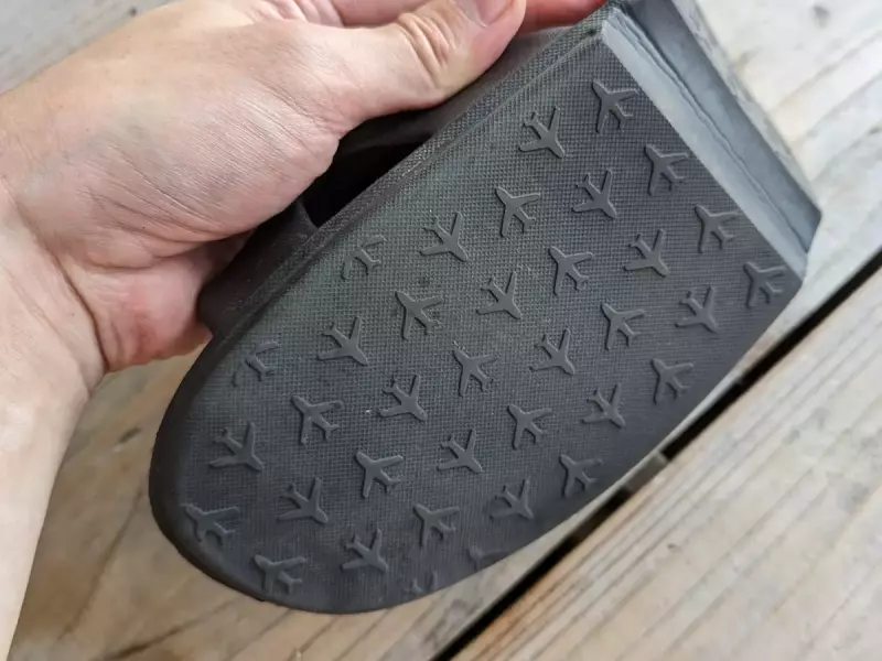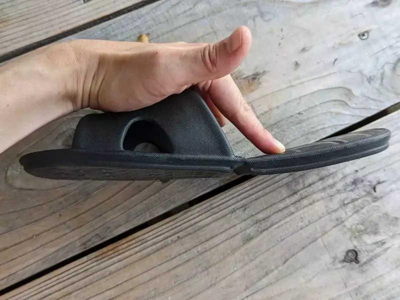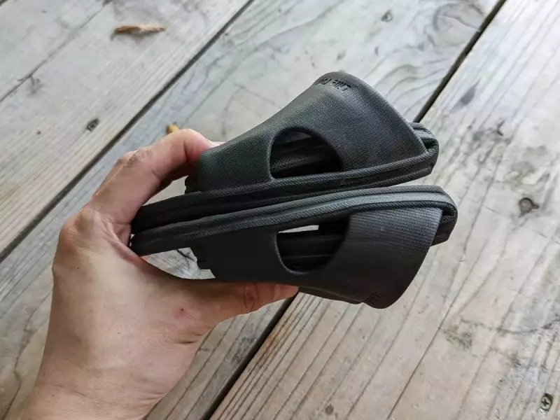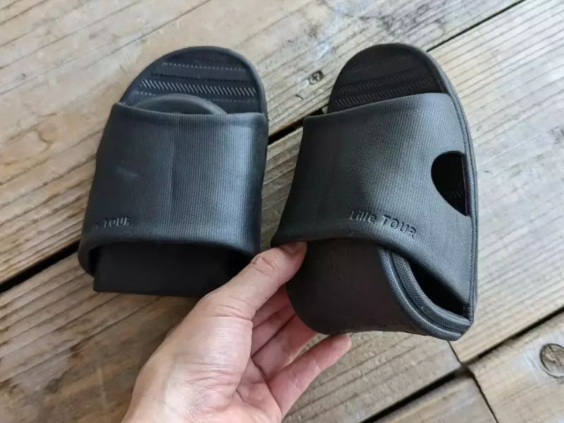紹介するサンダルはある程度の厚みがあり、壊れにくく、なんと真ん中で折りたたむことができるので、コンパクトに持ち運ぶことができます。100均のダイソーサンダルが109gなのに対して、このサンダルは120gなのですが、登山道でも足裏を傷めずに歩けるので安心です。