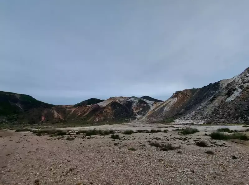 天狗ヶ城からの硫黄山方面です。硫黄山、遠目で見た時は噴気が立ち上っていたように見えましたが、この時はおさまってました。