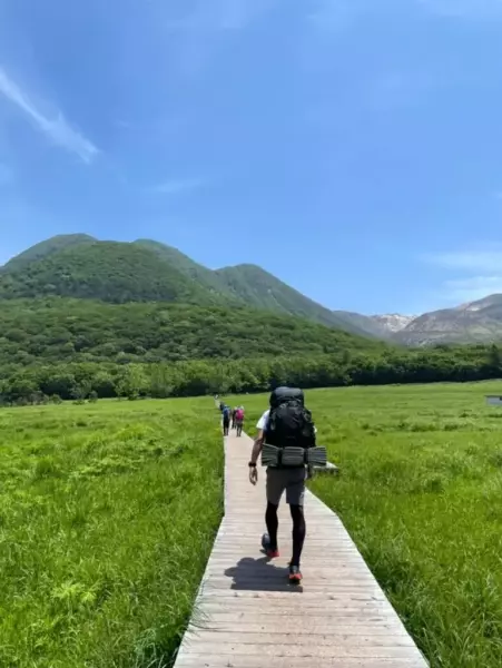長者原から坊ガツルまでは、綺麗に整備された登山道です。テン泊初心者の方にも安心なルート。樹林帯が多く、涼しいのもありがたい。この日も多くの方がテン泊装備で坊ガツルへ向かわれてました。