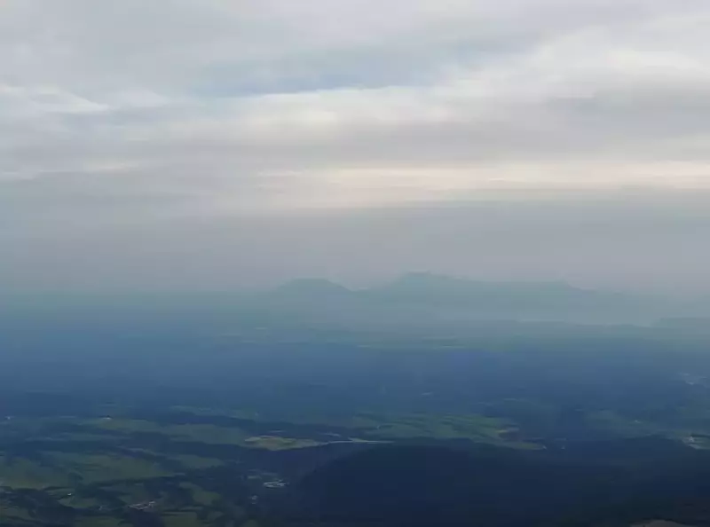 久住山からの眺望です。少しガスが出てますが、うっすら阿蘇山が見えてます。