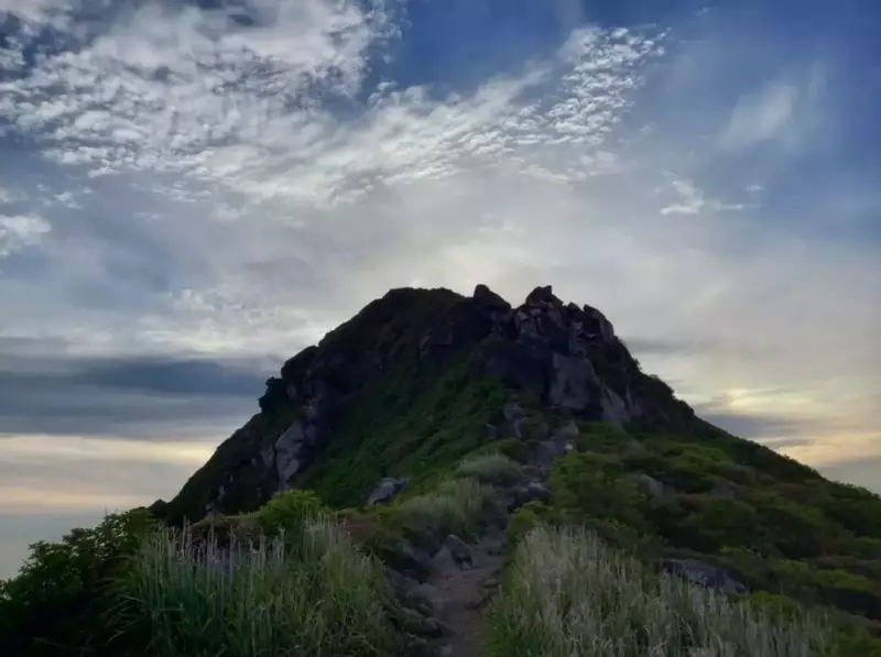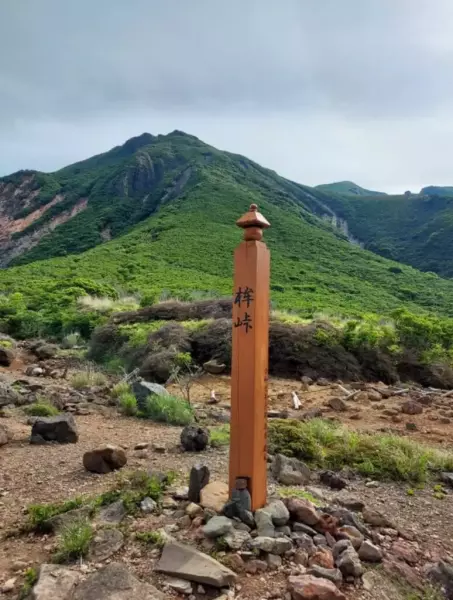 初日の登山ルートは、法華院温泉山荘から鉾峠経由で、白口岳、稲星山、中岳、天狗ヶ城、久住山、北千里ヶ浜と周回します。日が落ちて行く時間帯なので絶景に期待です。こちらは「鉾峠」の標柱です。後ろに見えるのがこれから登る「白口岳」です。中岳、久住山はその奥になります。