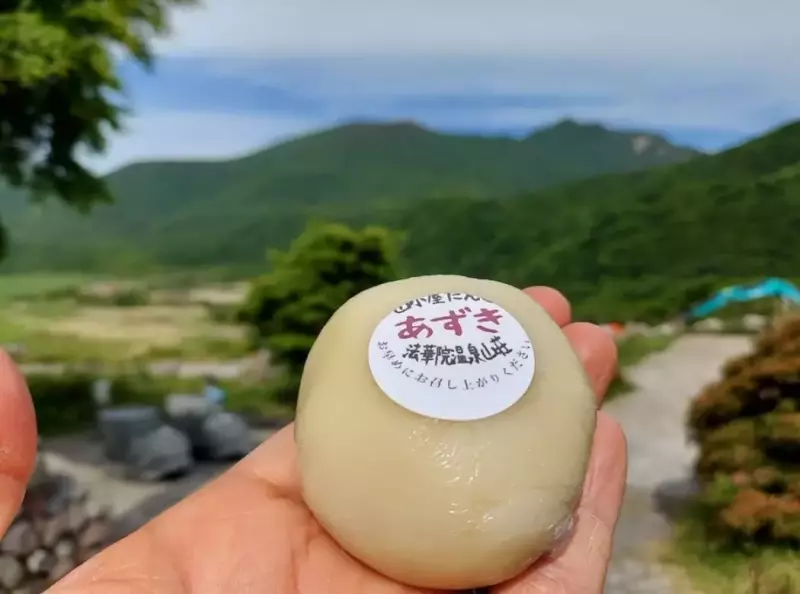 山小屋だんご(あずき)いただきました。法華院温泉山荘に来たらコレ食べないと。250円です。「いも」と「あずき」の二種類あります。やわらくて旨い。