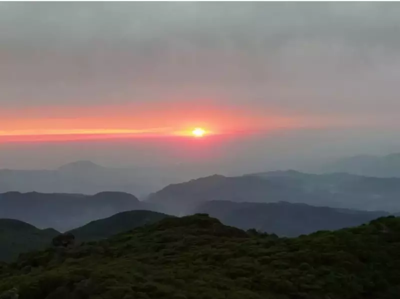 大船山山頂手前での御来光です。雲は多いですが、御来光見れました。