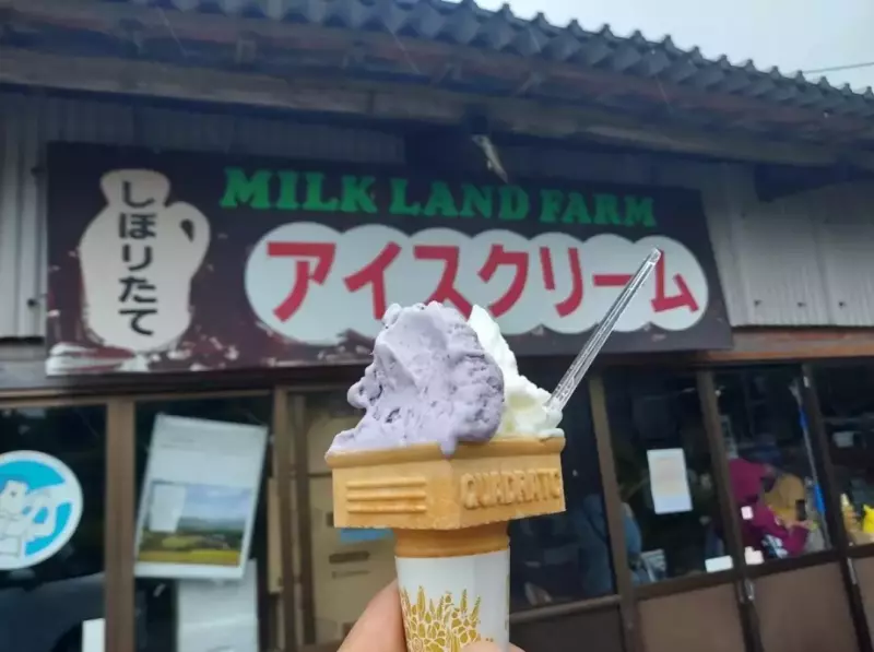 下山後のお楽しみを少しご紹介します。まずは、長者原から車で10分程の場所にあるミルクランドファームさんでアイスクリームいただきました。ここのミルクアイスは濃厚で美味しいです。