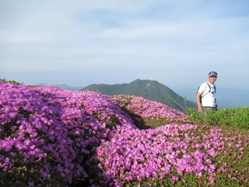 北大船山のミヤマキリシマ群生地です。事前情報では今年は7年ぶりに虫の被害が多いとのことでしたが、鮮やかなピンクの花を咲かせています。