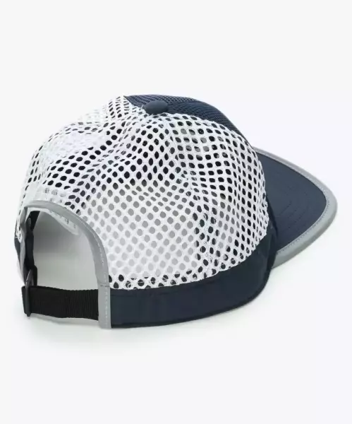 さらさらとした質感のランニング向けキャップです。メインの素材は撥水機能があり雨を弾きます。側頭部には滑り止め加工を施したサングラスホールが設けられています。サイドパネルのパンチングベンチレーションにより通気性を確保しています。