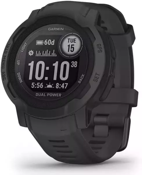 ソーラー充電が可能で、タッチスクリーンとボタン操作のハイブリッド仕様による使い心地の良さが特徴の画面の中で最もハイスペックなGPS時計です。時計だけでwi-fiへの接続、Bluetoothイヤホンと接続し音楽が再生でき、階段の上り下りデータや歩数、血中酸素トラッキングなどウェルネスライフをサポートし、普段使いにも最適です。