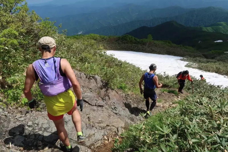 9:33 既に山頂アタック終えて帰路のトレイルランナー、いかに身軽とはいえこの人たちのペースは驚異的。