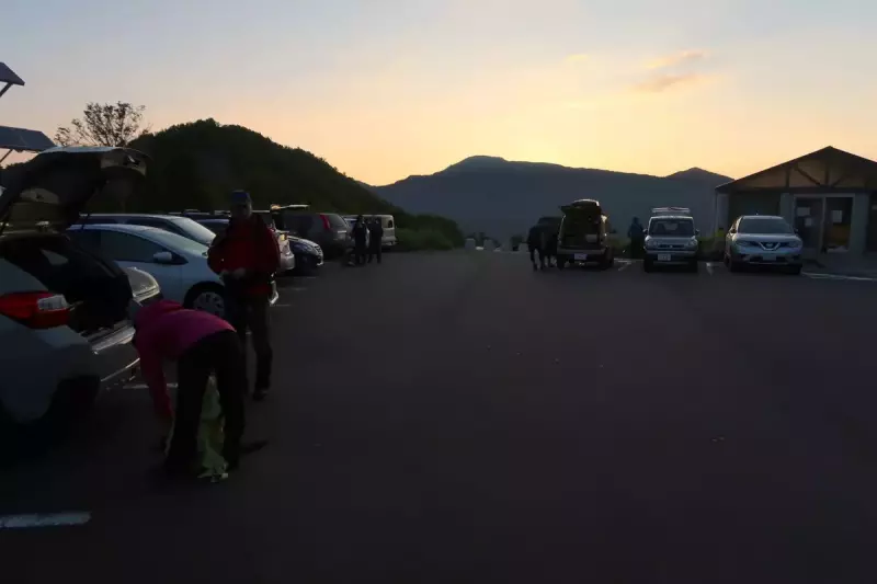 17:30 枝折峠着 日の出とともに出発、全行程12時間、標準コースタイムを3時間以上オーバー。