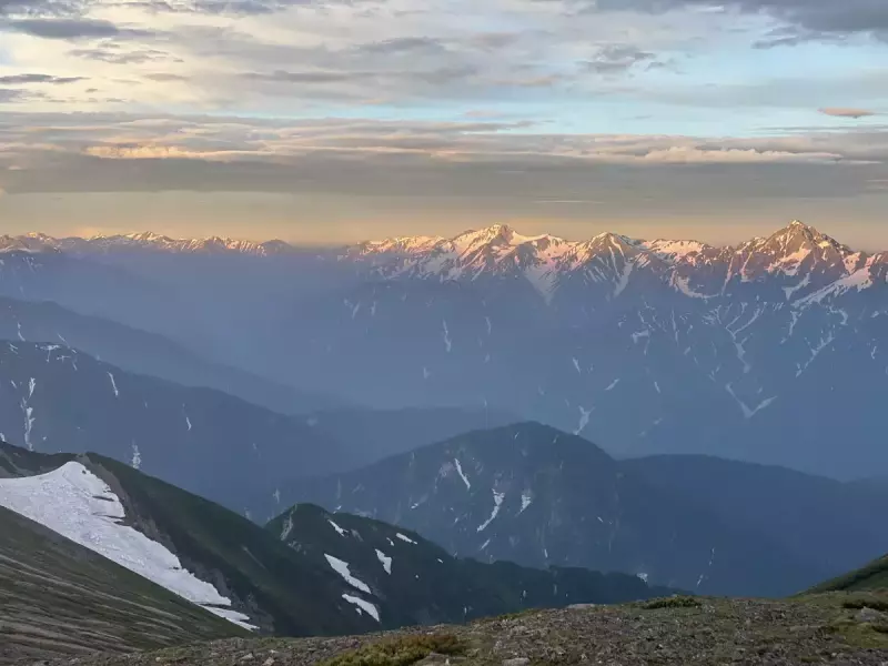 今回の1泊2日の登山の中で最も感動した時間でした。刻一刻と変わっていく山の景色と、立山連峰を照らすモルゲンロート。