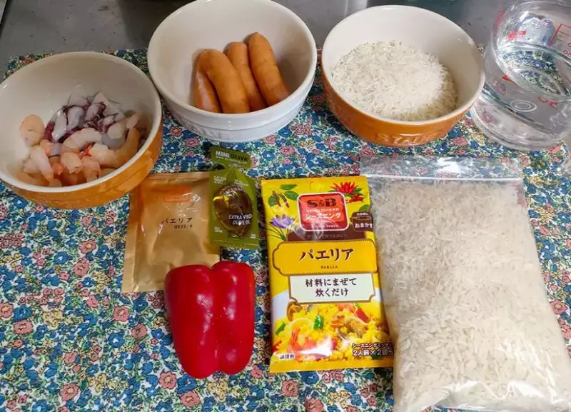 簡単メスティンレシピ「シーフードミックスで作る本格パエリア」の材料