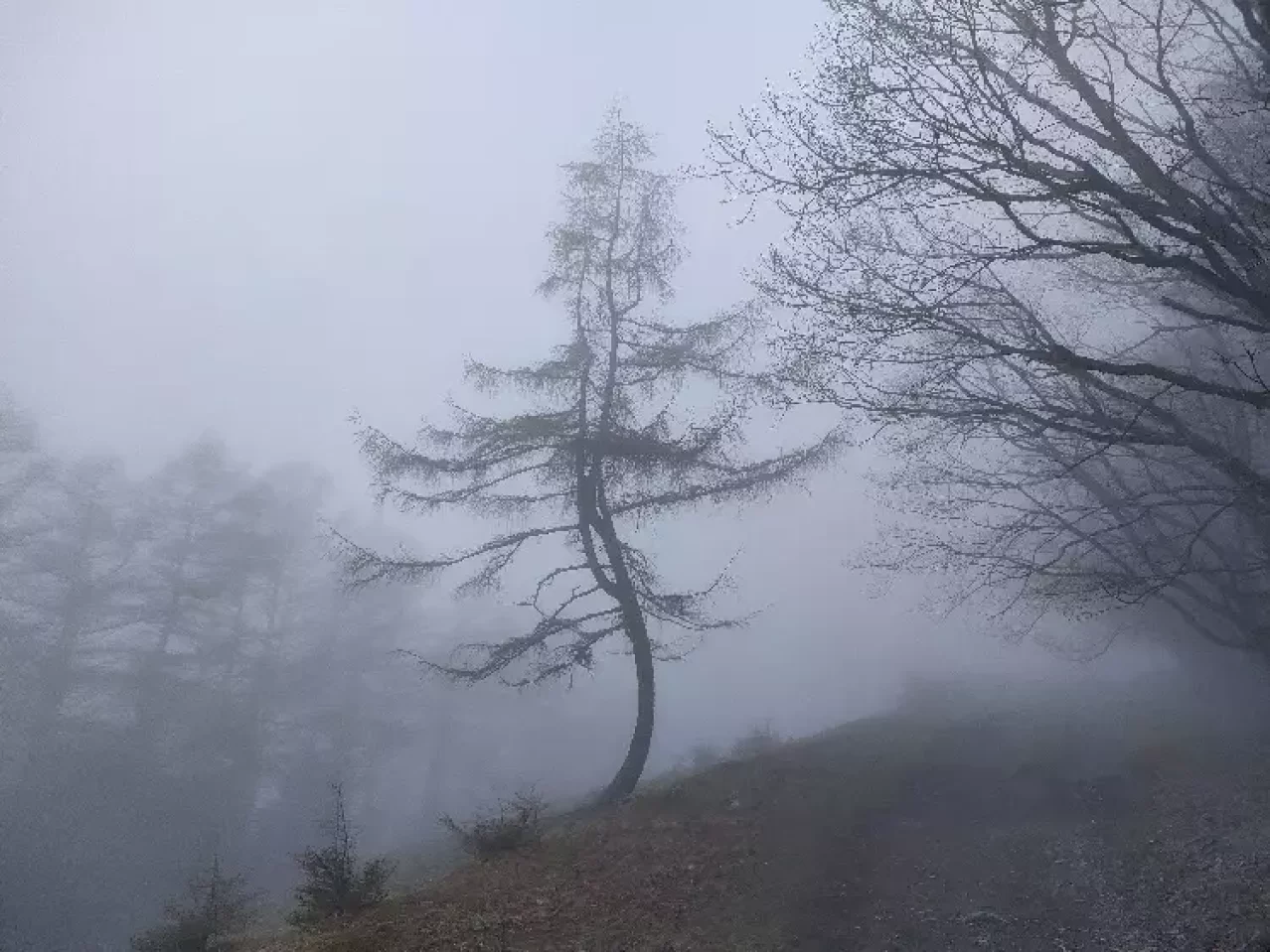 なんか晴れてません?ここまだ嵐なのに山荘から向こうは晴れてます、何この天気!