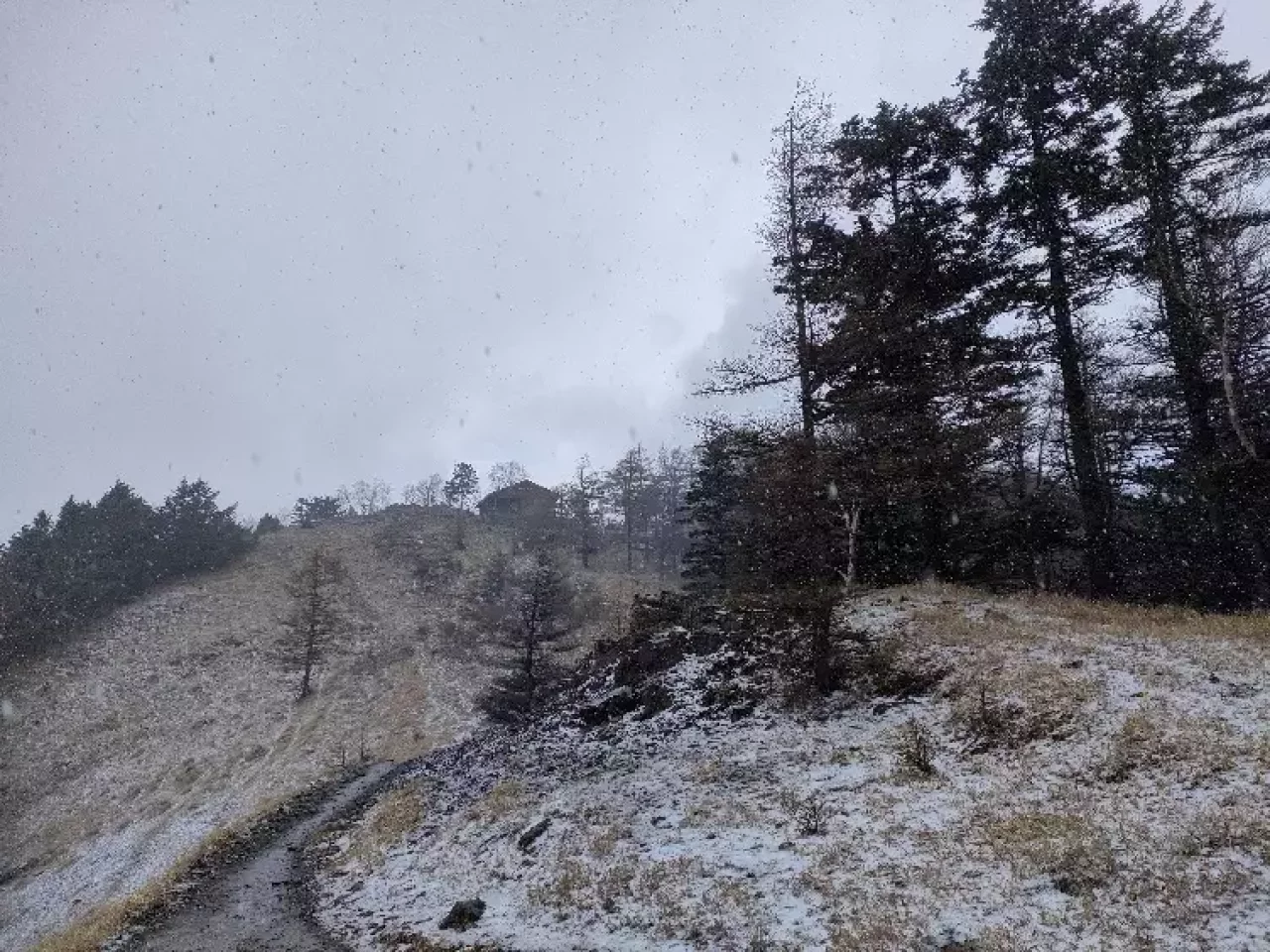 小雲取山も経由したあと、やっと避難小屋が見えてきました。