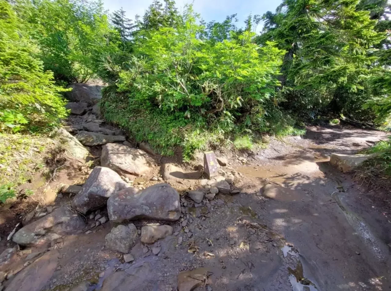 標高1,315mにある駐車場は登山口と野営場の2ヶ所で約200台停めることが出来ます。どちらも無料で利用ができます。7月から10月にかけて、登山口にて500円/人の入域料(任意、土日祝日のみ収受員在中)の徴収を行っています。我々も500円納めてスタートしました。