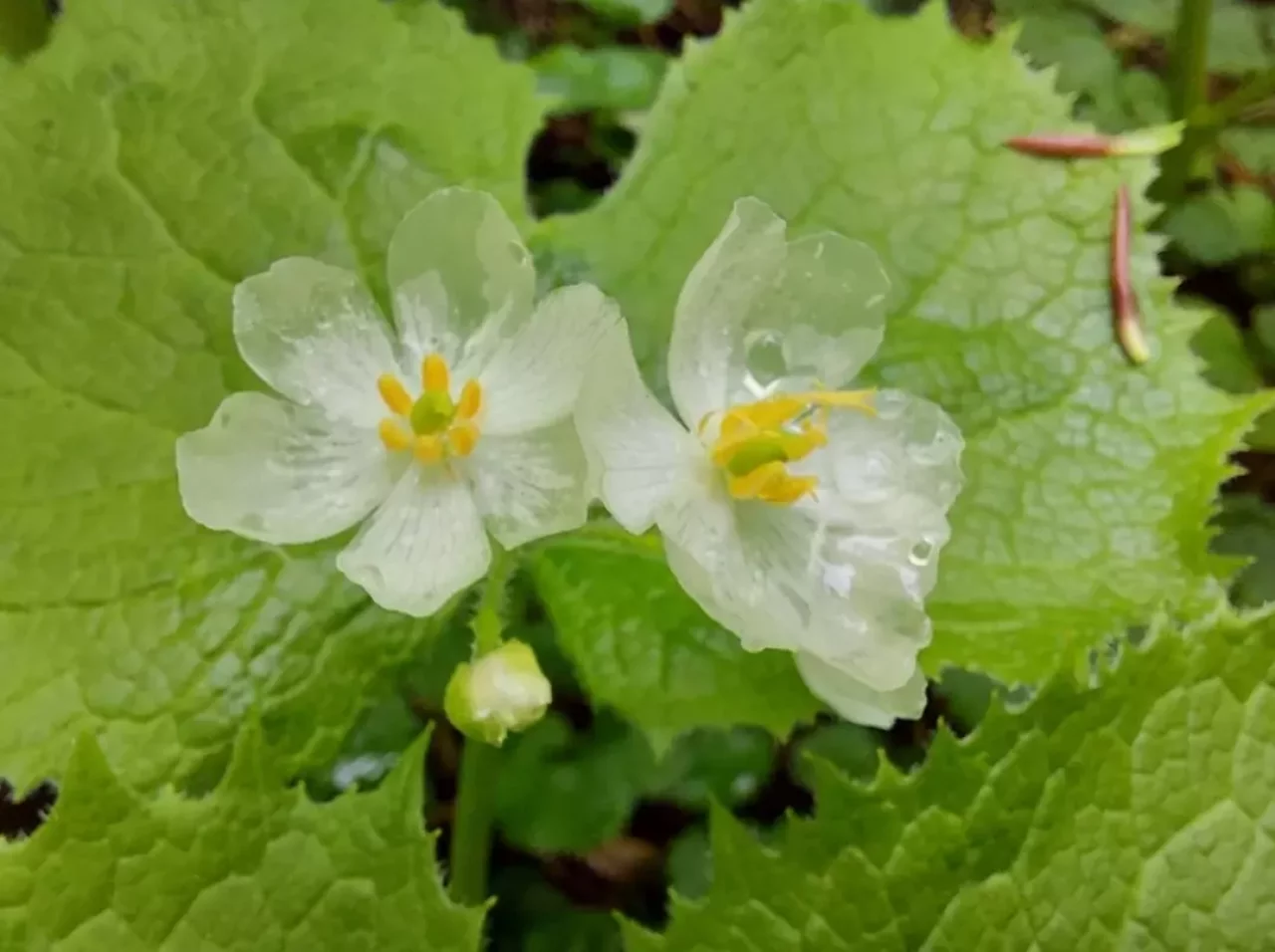 サンカヨウ普段は白い花ですが、雨に濡れると花びらが透明になります。いろんなところで沢山咲いてました。このルートも高山植物の宝庫です。