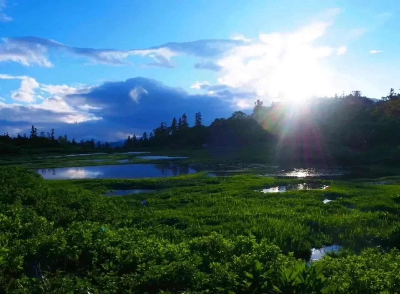天狗の庭登山道の中腹にある大湿原、逆さ火打山も同時に見られる極上のスポットです。