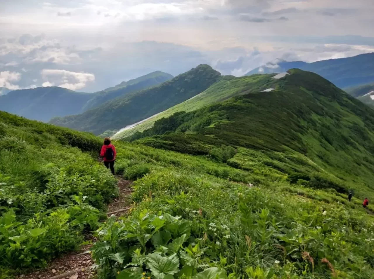 影火打へ続く稜線。火打山~影火打まで、ずーっとお花畑が続きます。オススメスポットです。登り返しになりますが時間があれば是非立ち寄ってみてください。