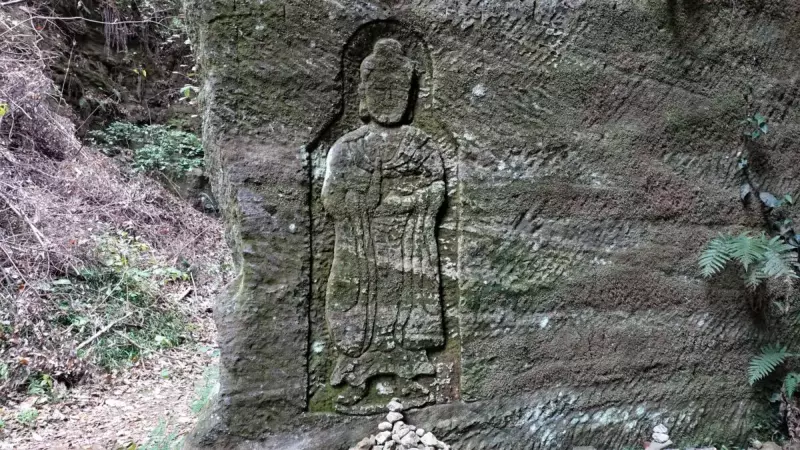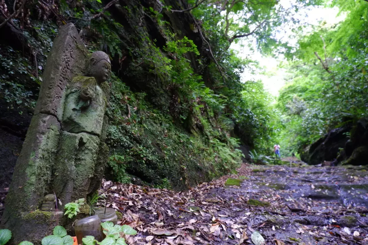 この朝夷奈切通を見るだけでも面白いのですが、「三郎の滝」や歴史を感じることができるお地蔵さんや、大きな岩壁「大切通し」、大きな岩に彫られた磨崖仏(まがいぶつ)は、見るだけでも楽しいスポットです。