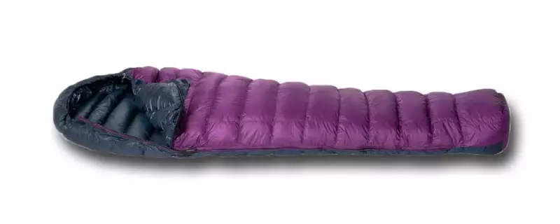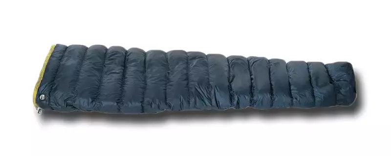 すべてにボックスキルトを採用し、非常に厳しい保温力テストでフィルパワーを提示するウエスタンマウンテニアリングの軽量に優れたダウンシュラフです。ダウン入りの襟巻がついており、体幹の熱を外に逃がさないように作られています。