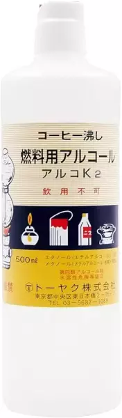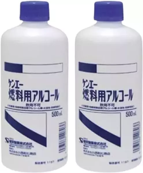 ドラッグストアでも購入することができる燃料用アルコールです。メタノールとエタノールを混合したアルコールで最も多くの人が利用しているアルコール燃料です。