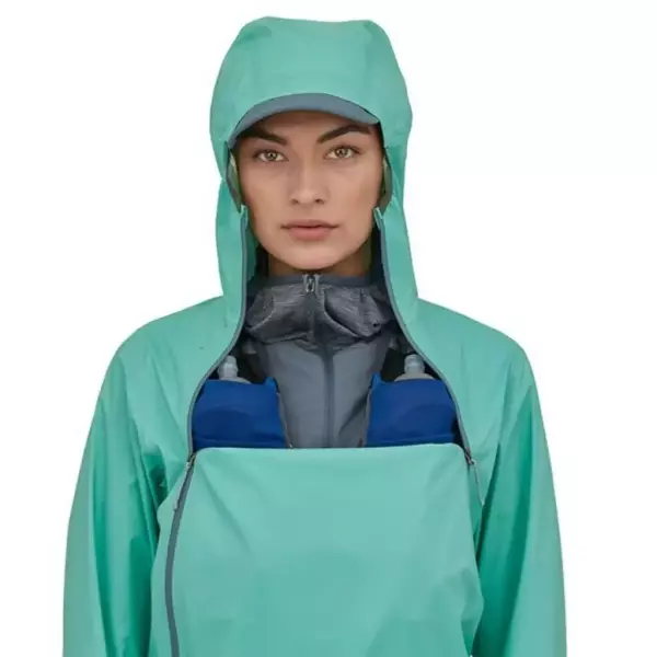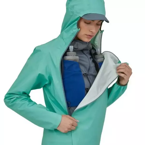 フードの内側のポケットに本体を収納することができるパッカブル仕様で小さなトレイルランニングザック使用時にも持ち運びしやすく便利です。