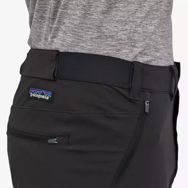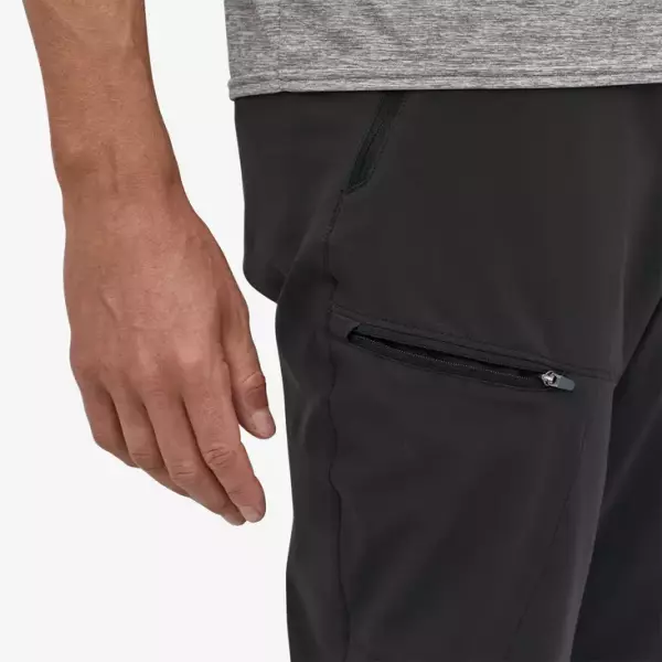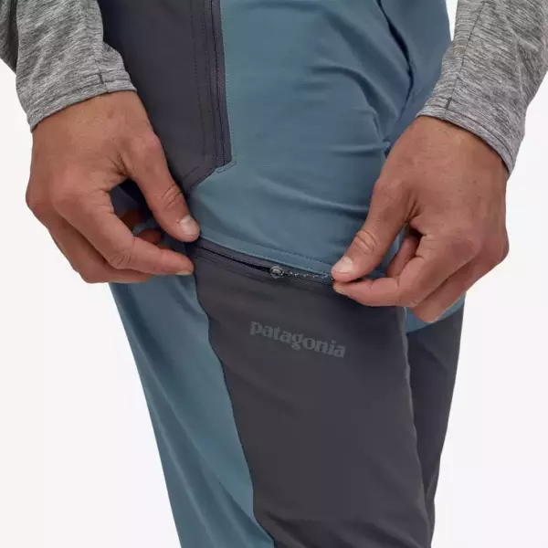286g(Mサイズ)と軽量なパタゴニアのパンツです。登山時の使用に使いやすいジッパー付きポケットは太ももとヒップに備わっています。
