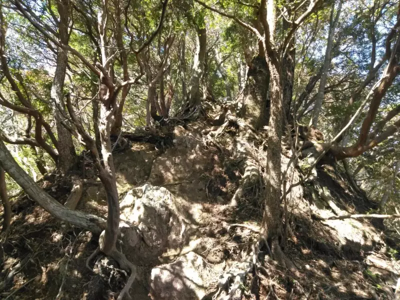 広い道ですが、ところどころ細い尾根に分かれており、方位を確認しないと吸い込まれそうになります。方角を随時確認して進みます。