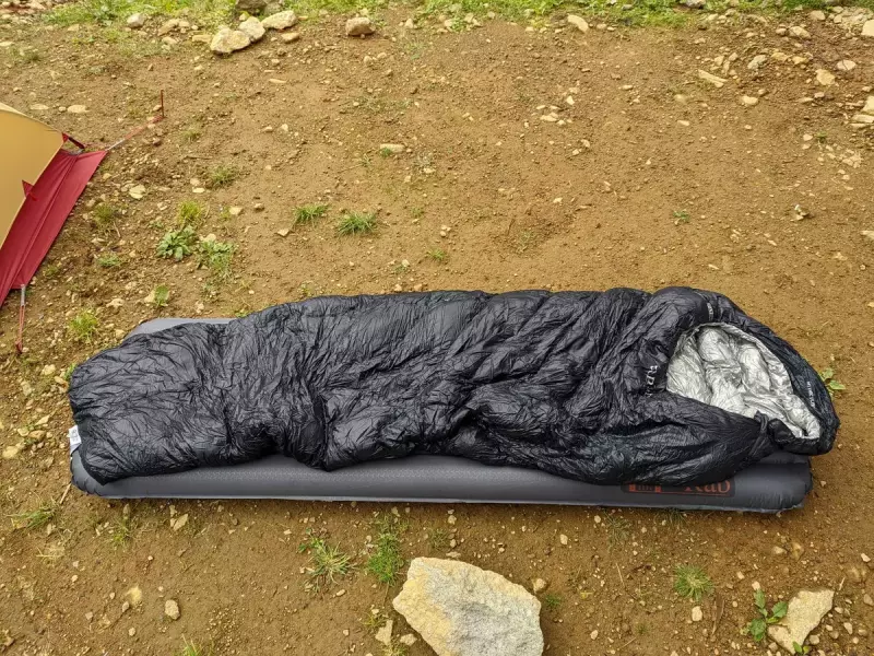 ダウンジャケットとダウンパンツを着用してダウンシュラフに潜り込み就寝をしています。ダウンシュラフはRabのミシックウルトラ180(400g)か、シートゥサミットのスパークSP1(350g)で、それぞれ標高による想定気温によって使い分けています。