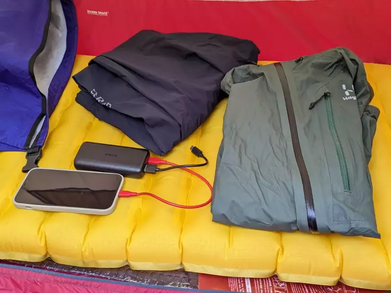 これら着替えを入れているスタッフバッグは山旅リバーシブルピローで、着用していたウェアをこのスタッフバッグに入れてこのスタッフバッグに入れることで枕に早変わりします。