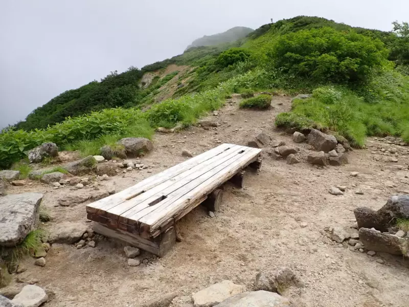 弓折岳分岐に到着です。分岐にはベンチがあり、腰を下ろして休めます。