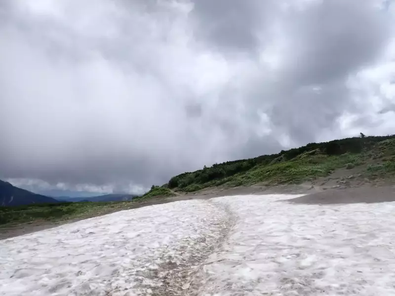花見平付近には雪が残ります。思わぬ雪に心身の疲労が和らぎます。