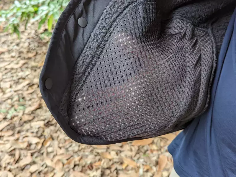ポケットの中は起毛したメッシュ素材で覆われていて、体から出た熱は、このメッシュの素材を通して手を温める働きがあります。