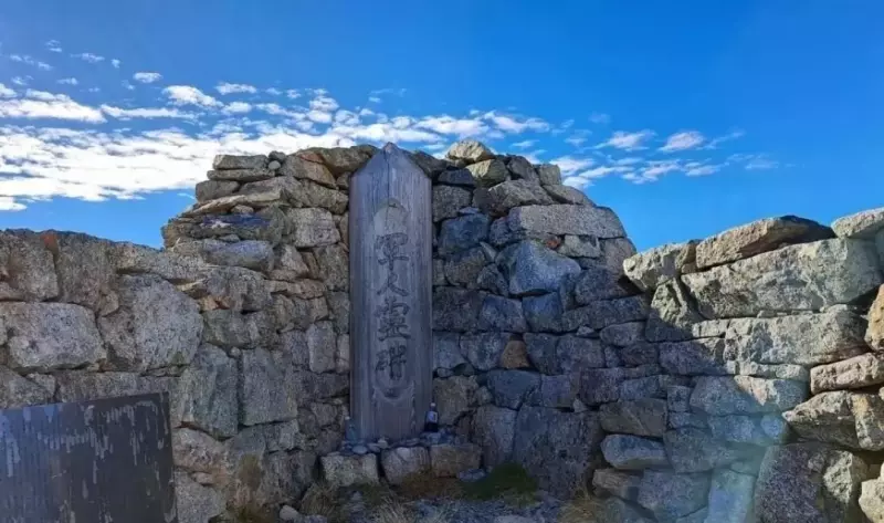 浄土山(北峰)には「軍人霊碑」があります。これは明治42年(1909年)に建立され平成17年(2005年)に再建されたものです。この慰霊碑は、日露戦争で戦病死した富山県出身者2595名(第9師団歩兵第35連隊)を祀ったものです。