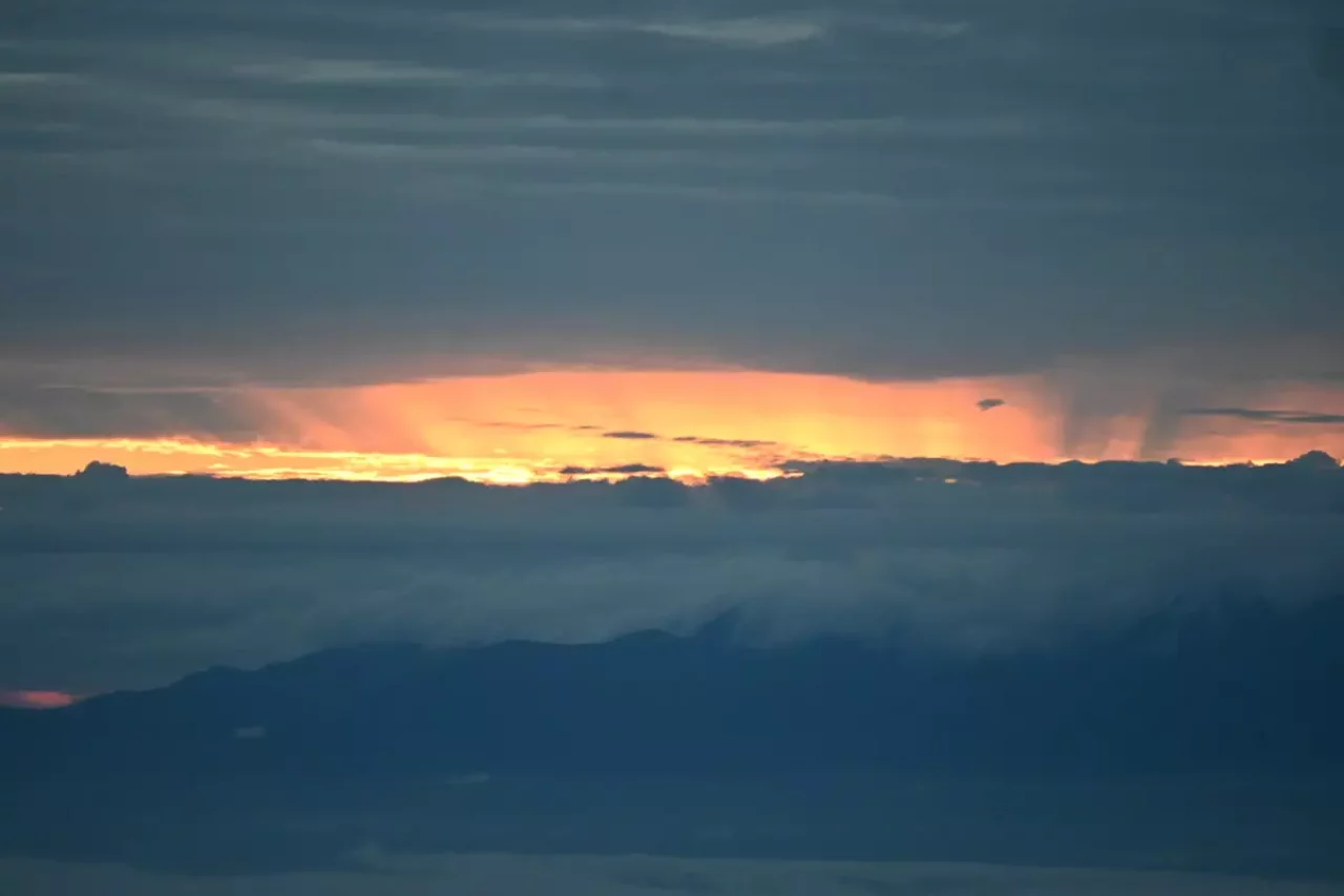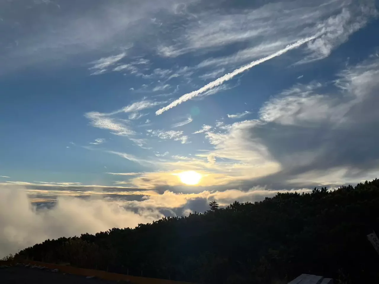 ビジターセンターの南側に行くと夕陽と大雲海。青とオレンジのコントラストで正にマジックアワー。