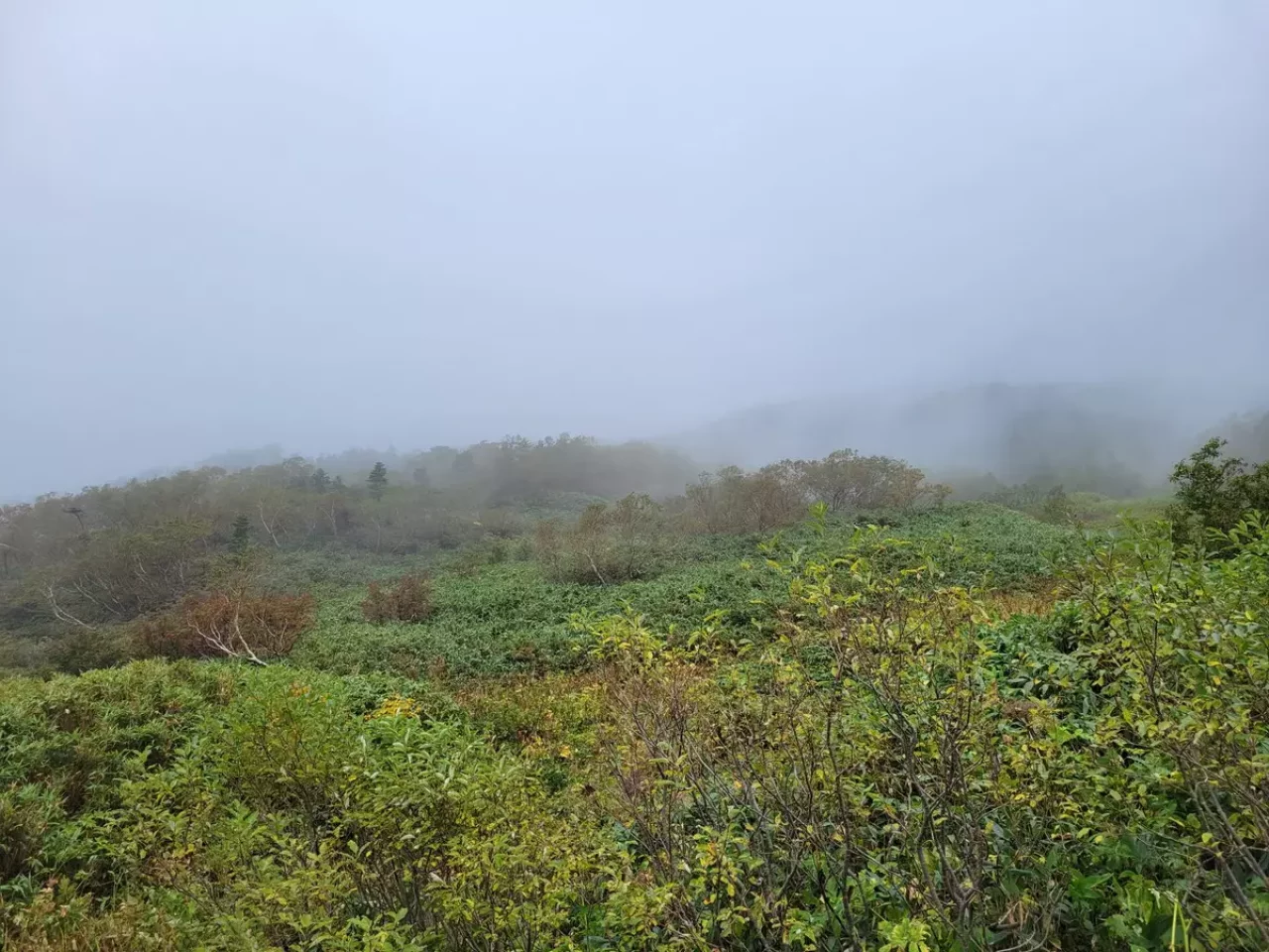 景色の良さ、花の美しさでしんどい記憶が消されてる……。予報通り天気悪くガスで湿度が高く蒸し暑い。
