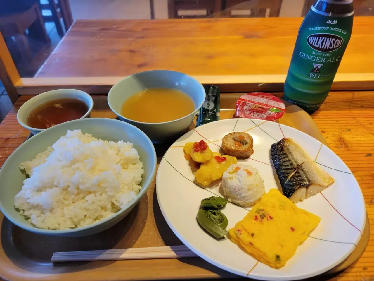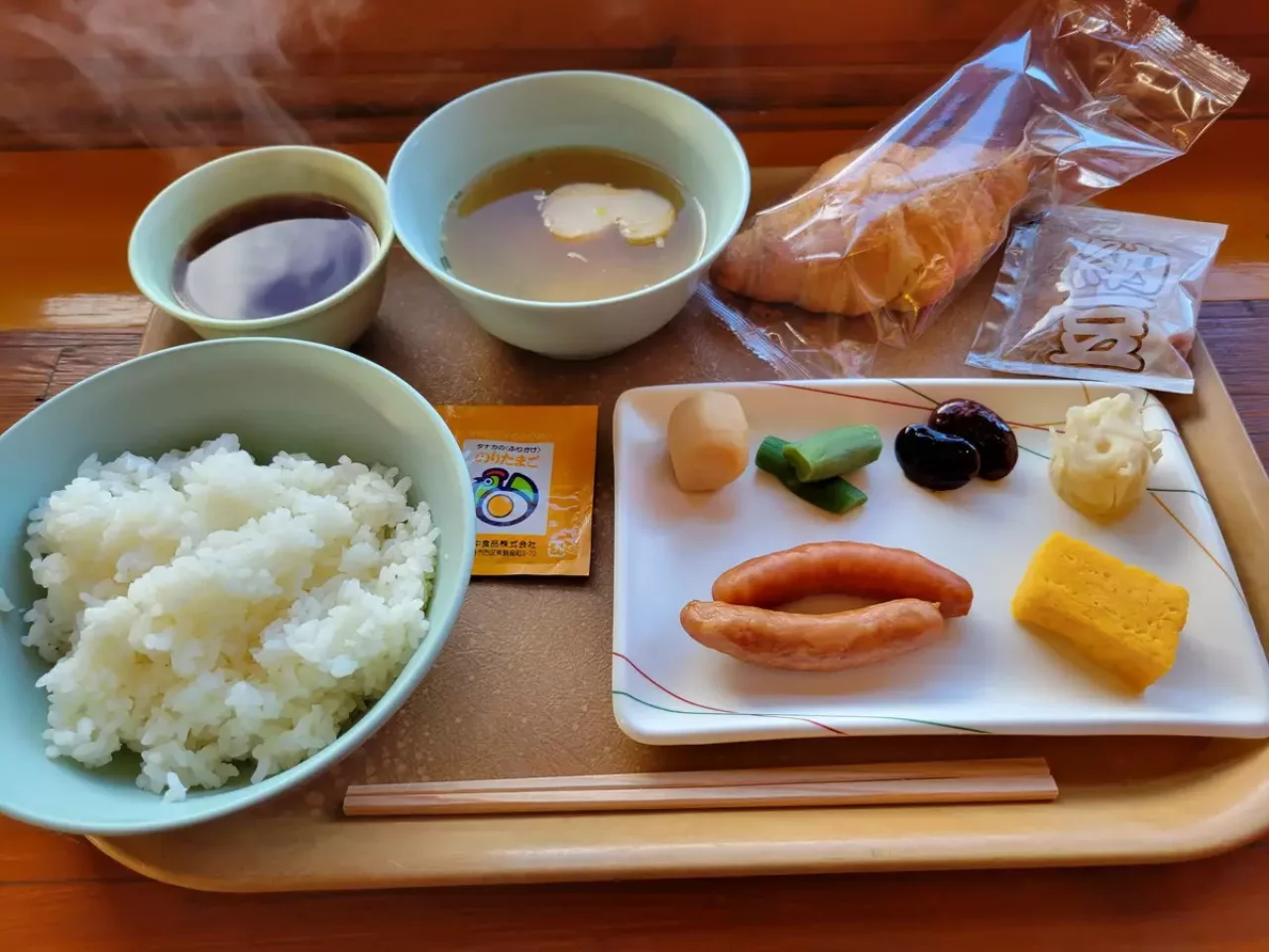 ビジターセンターに戻り、朝食。やはり味噌汁はぬるいけど、温かい米とふりかけは最高。