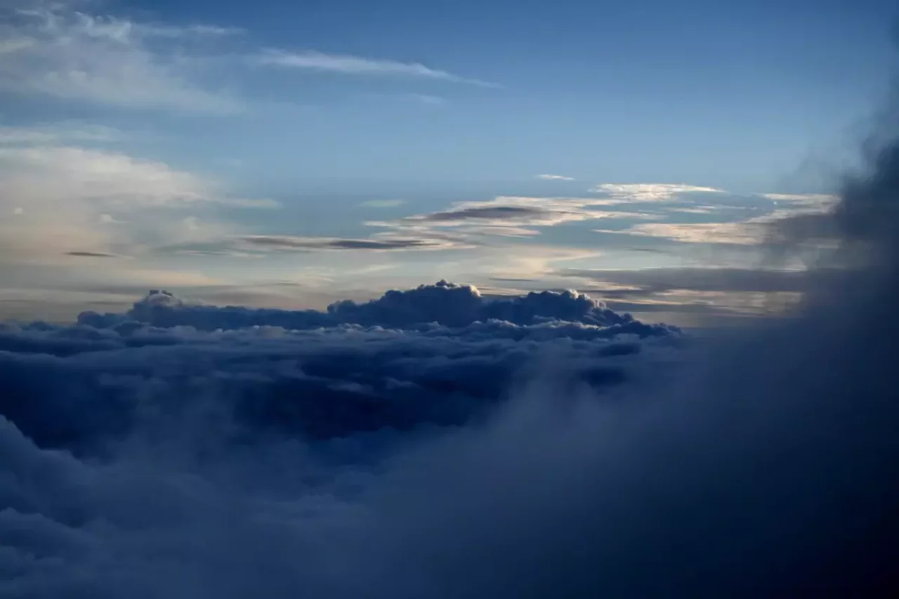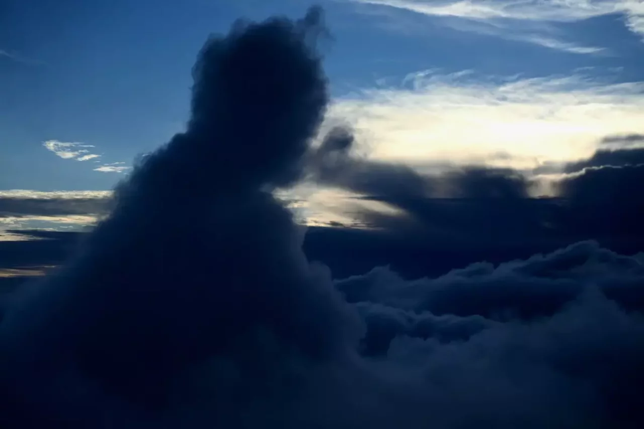 雲海に乗っているような素敵な写真。縦に広がる巨大な雲の塊がまるで雲巨人が雲を吐き出して大雲海を生み出しているように見えたり。