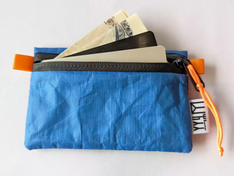 上と同じく、ダイニーマ・コンポジットファブリックで作られたミニマムな財布です。シンプルな構造で紹介する財布の中ではわずか10gで最も軽量です。