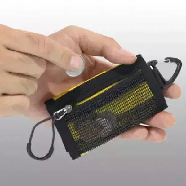 カードはジッパー式ポケットに収納します。日本のカードを100種類確認して、高さの最大サイズを確認して取り出しやすいジッパー位置でデザインしたこだわりの登山用財布です。小銭はマジックテープ付きのメッシュポケットなので、中身を確認することができます。取り出すのも簡単です。