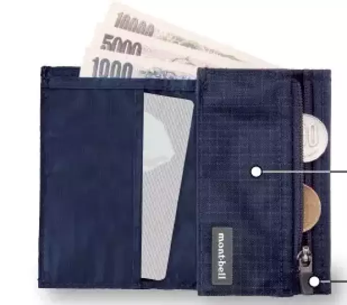 モンベルの財布の中で、最も軽量な3つ折りウォレットです。登山での使用に適した耐久性を備え、コストパフォーマンスにも優れています。