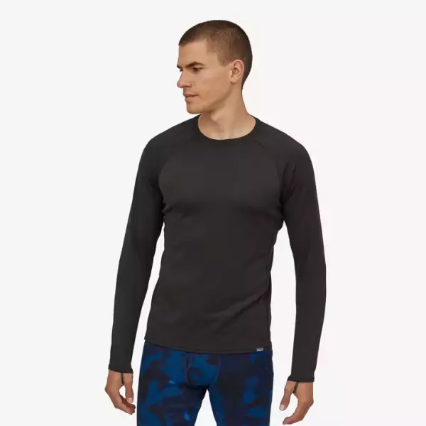 ストップアンドゴーが多い防寒対策を重視したい登山の場合はキャプリーン・ミッドウェイト・クルーを活用しています。このベースレイヤーはラグランスリーブで動き易く素肌に触れる面にはダイヤモンド型のグリッドパターンが採用されており、保温性と通気性のバランスに優れています。ジッパーがない分軽い着心地が特徴です。