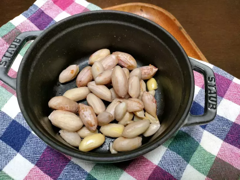 A:殻付き生落花生1パックは殻を外し、たっぷりの水に半日つけておきます。