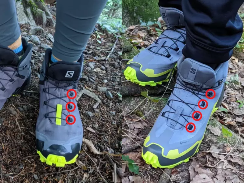 余計なレース部分はシュータンにしまうことができるのもサロモンのトレッキングシューズならではで、一度このシューレースに慣れてしまうと、他のシューズを履く時にストレスを感じるほどです。