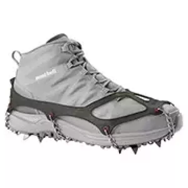 スパッツは靴の中に砂や小石が入るのを防ぎます。靴の上から簡単に装着できる軽アイゼンは、残雪や凍結の備えとして携行します。