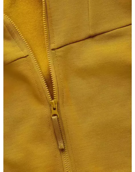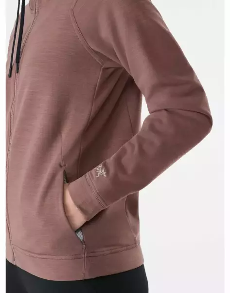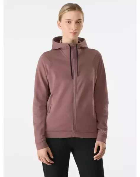 フードがついたフリースジャケットです。無駄なものを一切省いたデザインはミドルレイヤーの使用に適したモデルで、日帰りのハイキングやキャンプなどでの使用におすすめです。ウールの暖かさを追加したフリースなので寒がりな女性におすすめです。重量は450g です。