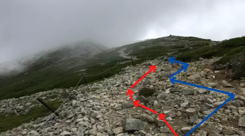 正しい登山道を歩いている場合は、道は踏み固められていることが多い為、今まで歩いて来た登山道より、道がフワフワとした感覚がある場合は間違っている可能性があるため注意しましょう。
